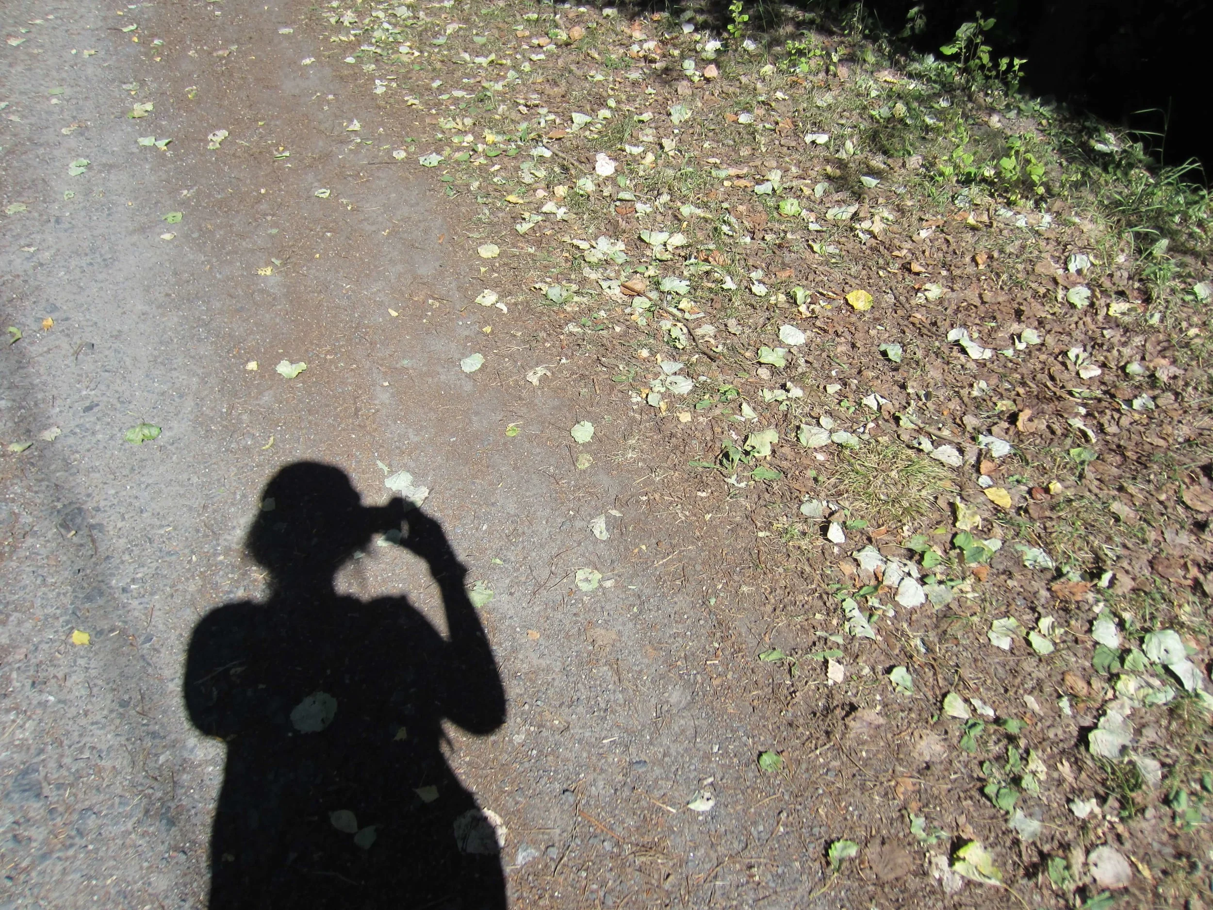 Plutselig skvetter jeg til! Jeg har ikke sett et menneske på lenge, men nå er det noen som følger etter meg. Jeg hører at det rasler i grøftekanten! Jeg snur meg fort rundt, klar til å forsvare meg mot et eventuelt overfall. Så er det bare noen tørre lønneblader som blåser bortover veien. Ikke noe å være redd for, altså. Jeg må nesten le litt. Ha-ha! Snakk om å være skvetten. Jeg bør nok være ute i naturen litt ofteren.