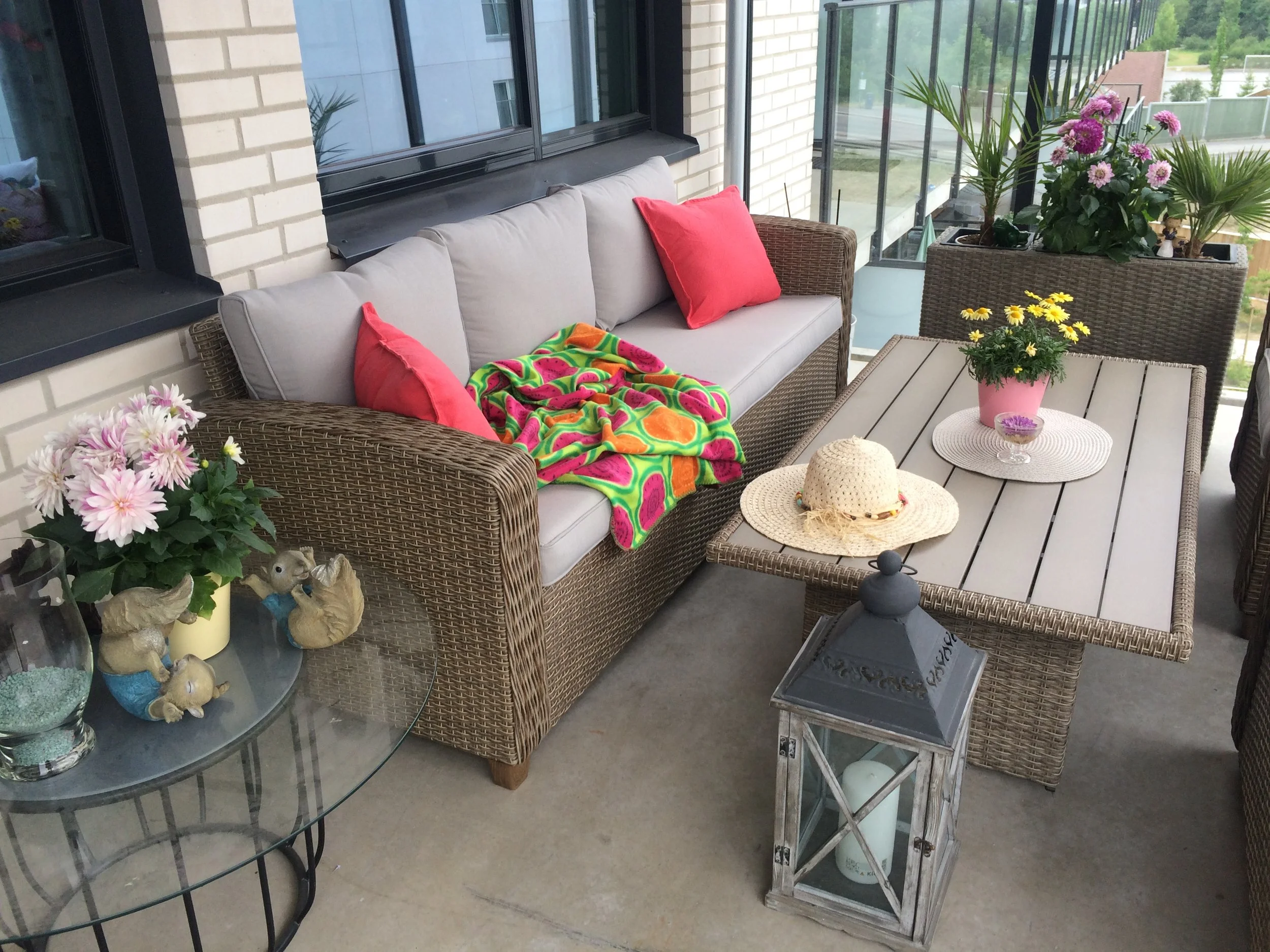 Endelig kan jeg sette meg på balkongen med kaffe og wienerbrød. Hofter og føtter hverker litt mindre og skoa hviler i gangen.